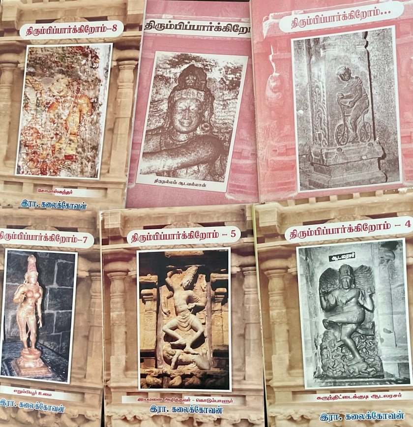 – சிராப்பள்ளி வானொலியில் 12 வாரங்கள் தொடர்ந்து கோயில்களின் மேன்மை, அவை வரலாற்றுக் களங்கள் என்பன குறித்து மக்களிடம் பகிர்ந்த தரவுகளை ஒருங்கிணைத்துத் தலைமைக் கட்டுரையாக்கிப் பல இதழ்களில் வெளிவந்த கட்டுரைகளுடன் சேர்த்து உருவாக்கிய நூல். பல்லவர்களின் பிராகிருதச் செப்பேடுகள், சிம்மவர்மரின் சமஸ்கிருதச் செப்பேடுகள், ஓங்கோடு-சுராச் செப்பேடுகள், காஞ்சிபுரம் ராஜசிம்மேசுவரம் குறித்த அம்ம அழகிதே, தேவதேவிக் கல்வெட்டுகள் ஆகிய கட்டுரைகளும் திருவலஞ்சுழிக் கோயில் ஆய்வுக்காலப் பதிவுகள் பேய்த்தொழிலாட்டி, யார் காரணம், மன்றத்துப் புன்னையும் மாமனிதர் அப்பரும், சில நேரங்களில் சில கேள்விகள், தட்டாத கதவுகள் திறப்பதில்லை, என்றைக்கு விழிப்பது, சாந்திக்கூத்து, வரலாறு காத்திருக்கிறது, ஆத்மாவின் அடையாளங்கள் எனும் பொதுக் கட்டுரைகளும் நகர் அப்பிரதீசுவரர் கோயில் தொடர்பான சமய சாசனம், நன்றியுடன் நகரிலிருந்து ஆகிய கட்டுரைகளும் திருநெடுங்களம் கோயில் ஆய்வில் வெளிப்பட்ட நெடுங்களத்தில் புதிய கல்வெட்டுகள், ஸ்ரீபுறக்குடிப்பள்ளி ஆகிய பதிவுகளும் மீட்டுருவாக்கத்திற்கு ஆளாகி இடம்பெற்ற நூல்.