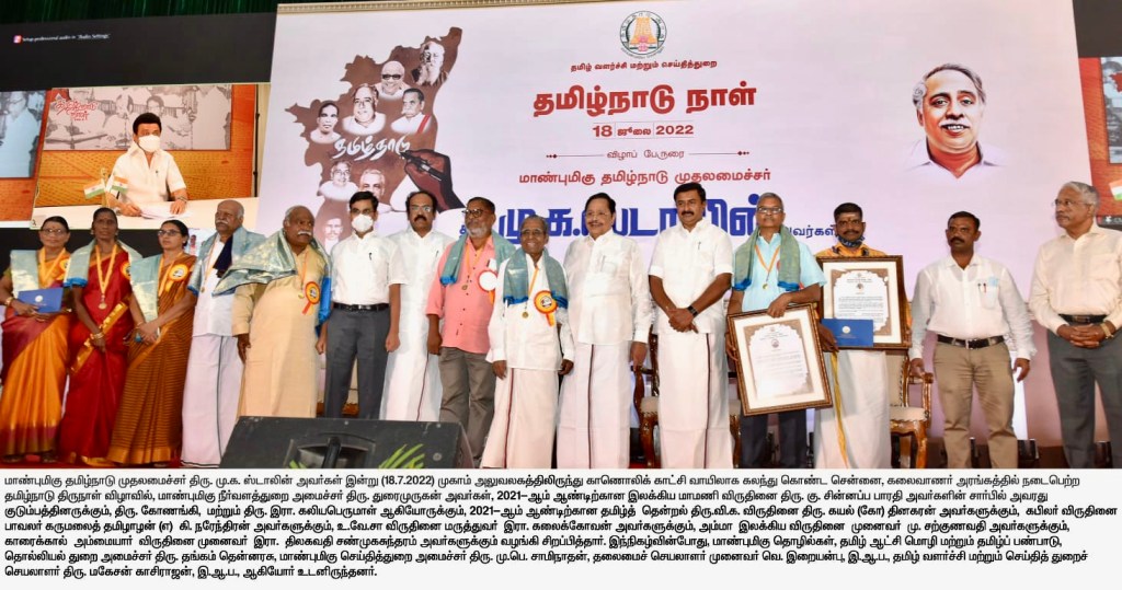 தமிழ்நாடு நாள் விழா ஜூலை 18, 2022 அன்று சென்னை கலைவாணர் அரங்கத்தில் வெகு சிறப்பாக நடைபெற்றது.