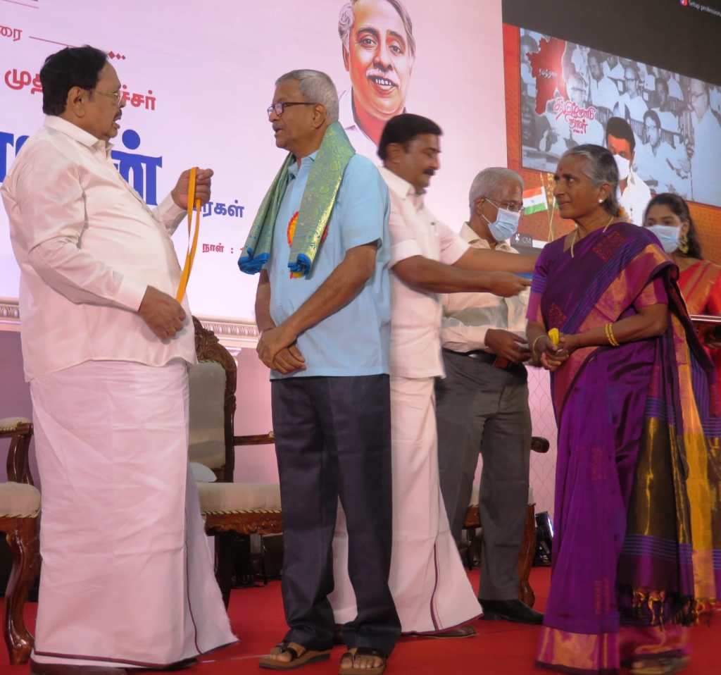 விழாவில், டாக்டர் மா. இராசமாணிக்கனார் வரலாற்றாய்வு மைய நிறுவனர் மற்றும் இயக்குநர் டாக்டர் இரா. கலைக்கோவன் அவர்களுக்கு, அவர்தம் சீரிய தமிழ்ப் பணிகளைப் பாராட்டி, 2021ஆம் ஆண்டிற்கான உ.வே.சா. விருது தமிழக அரசால் வழங்கப்பட்டது.