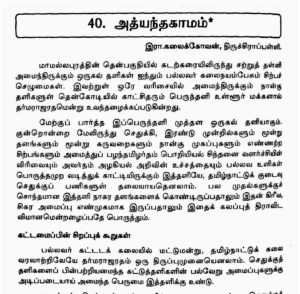 முதல்கள் இல்லாமல் முதல்வனாவது எப்படி? இராஜராஜீசுவரம் முடிவில்லாத முதல்களின் முதல்வன். கட்டி அமைக்கப்பட்ட காலத்தும் இன்று கண்டுகளிப்போரின் கருத்து நிறைக்கும் காலத்தும் இராஜராஜீசுவரத்துக்கு இணை இராஜராஜீசுவரம்தான். அது என்றென்றும் கோயில்களின் முதல்வன்.