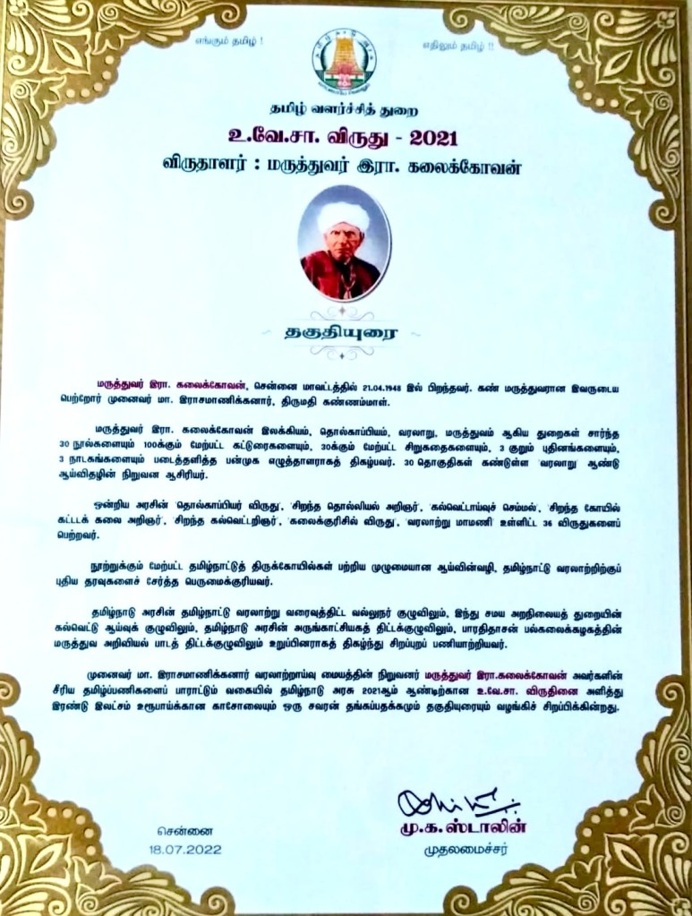 23/07/2022 அன்று ஒலிபரப்பான திருச்சிராப்பள்ளி வானொலிப் பண்பலையின் ‘வசந்த அழைப்பு’ நிகழ்ச்சி, 2021ஆம் ஆண்டிற்கான தமிழக அரசின் உ.வே.சா. விருது பெற்ற டாக்டர் மா. இராசமாணிக்கனார் வரலாற்றாய்வு மைய நிறுவனர் மற்றும் இயக்குநர் டாக்டர் இரா. கலைக்கோவன் அவர்கள் பங்கேற்ற சிறப்புக் கலந்துரையாடலாக அமைந்தது.