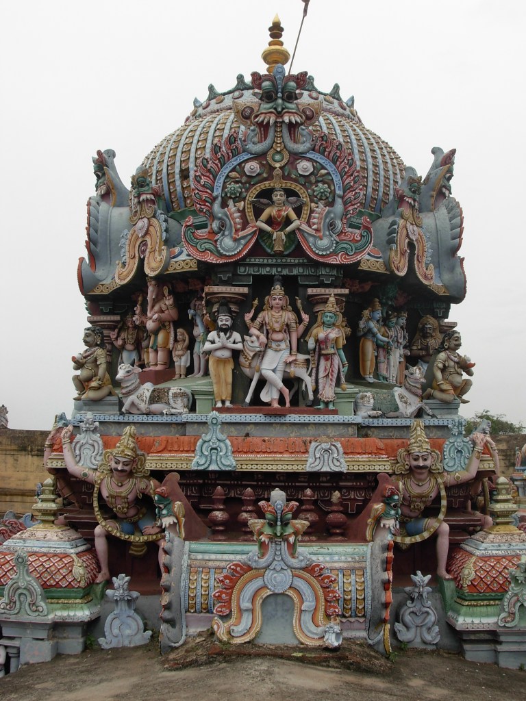 முதலில் ஆனந்ததாண்டவச் சிற்பங்களைப் பார்ப்போம் வாருணி. இரண்டு இடங்களில் இவை உள்ளன. இரண்டு தூண்களுக்கு இடைப்பட்ட சுவரில் மகரதிருவாசிக்கு நடுவில் வலக்காலை முயலகன் முதுகின் மீதும் உயர்த்தி வீசிய இடக்காலை அம்முயலகன் கையிலிருந்து சீறி வளர்ந்தோங்கி படம் விரித்திருக்கும் பாம்பின் மீதும் இருத்தி ஆனந்த நடமிடும் இறைவனின் இடமுழங்காலை மற்றொரு பாம்பு சுற்றிப் படமெடுத்துள்ளது. அதன் தலை தொட்டவாறே இறைவனின் இட முன் கை வேழக்கையாக வீசப்பட்டுள்ளது. பின்கைகளில் துடியும் தீயகலும் அமைய, வல முன் கையோ காக்கும் குறிப்பில்.