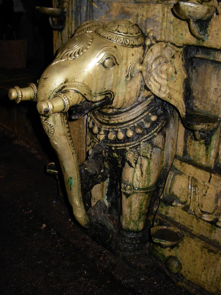 கீர்த்திமுகத்திற்கு நேர் கீழே தாமரைமலரில் அர்த்தபத்மாசனத்தில் பின் கைகளில் தாமரை மொட்டுகளுடன் யானைத்திருமகள். முன் கைகள் காப்பும் அருளும் காட்ட, அம்மையின் இருபுறத்தும் துளைக்கைகளில் நீர்க்குடங்களுடன் அலங்கரிக்கப்பட்ட யானைகள்.